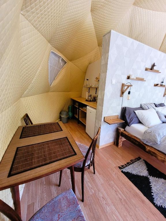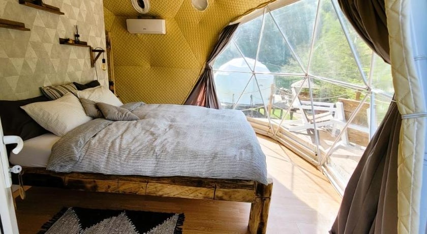 Vivez une expérience unique en pleine nature dans notre dôme spacieux et lumineux, conçu pour offrir confort et authenticité. Avec sa vue imprenable sur le lac et son intérieur chaleureux, il allie parfaitement design insolite et prestations haut de gamme. Idéal pour un séjour en famille, entre amis ou pour une escapade romantique hors du temps.